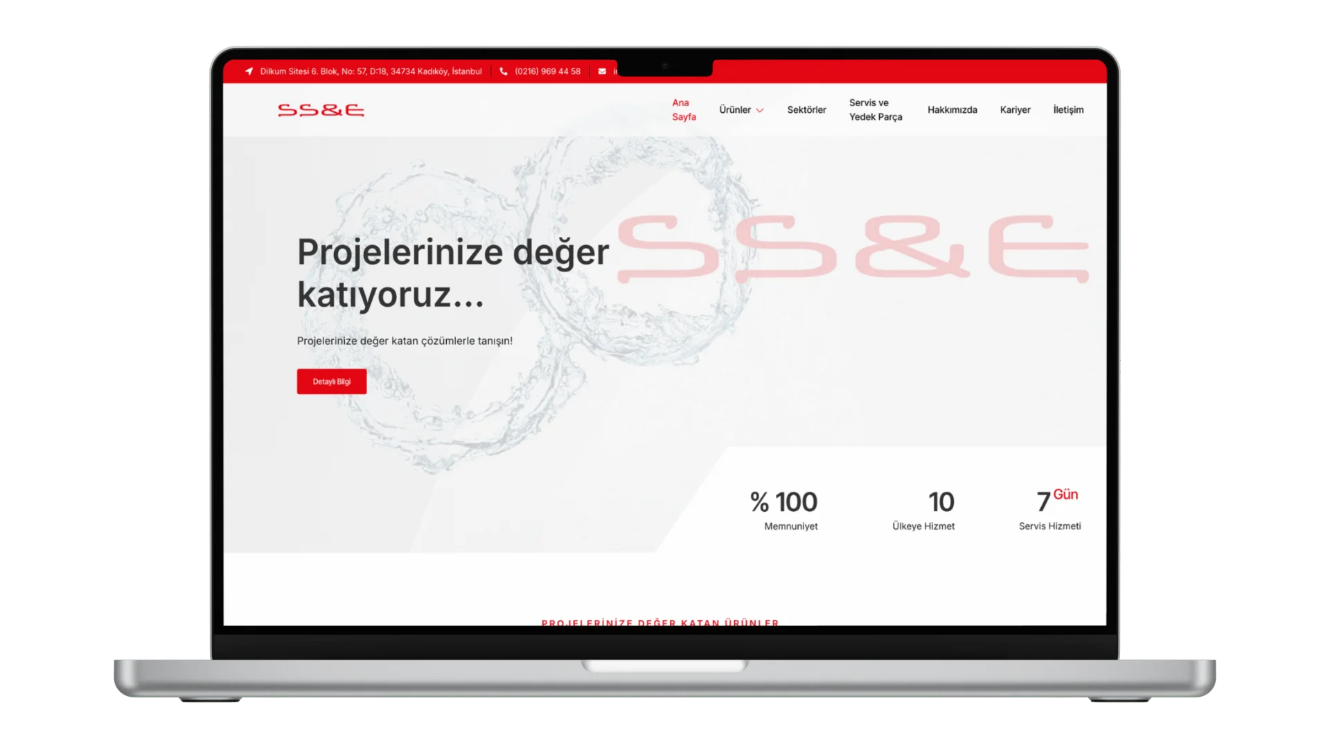 SSE İklimlendirme, ısı pompaları, rooftop üniteleri, paket sistemler ve özel iklimlendirme çözümleri sunan güvenilir bir mühendislik firmasıdır. Kurumsal web sitesini modern, kullanıcı dostu ve profesyonel bir yapıyla tasarlayarak marka imajını dijitalde güçlendirdik.